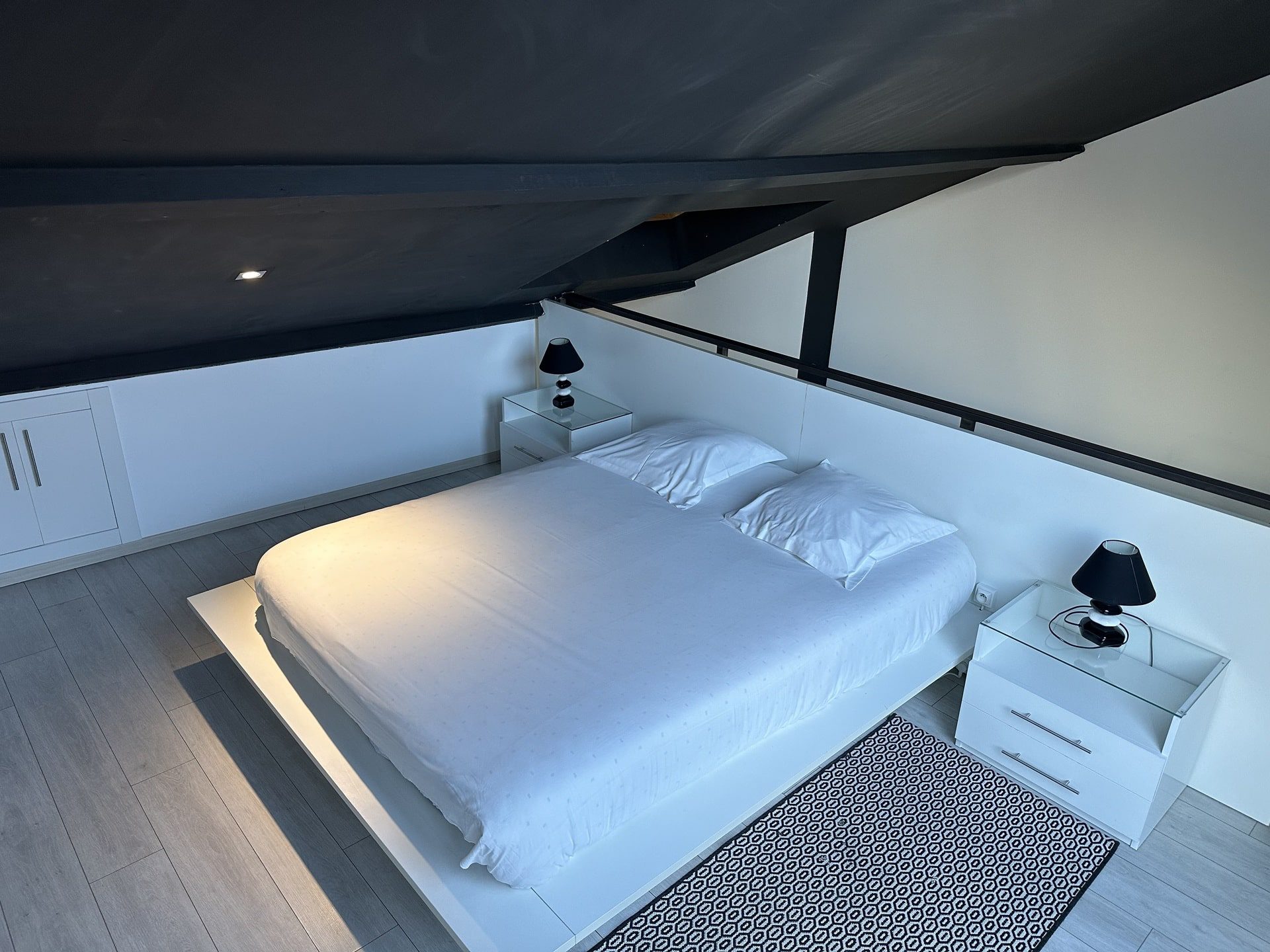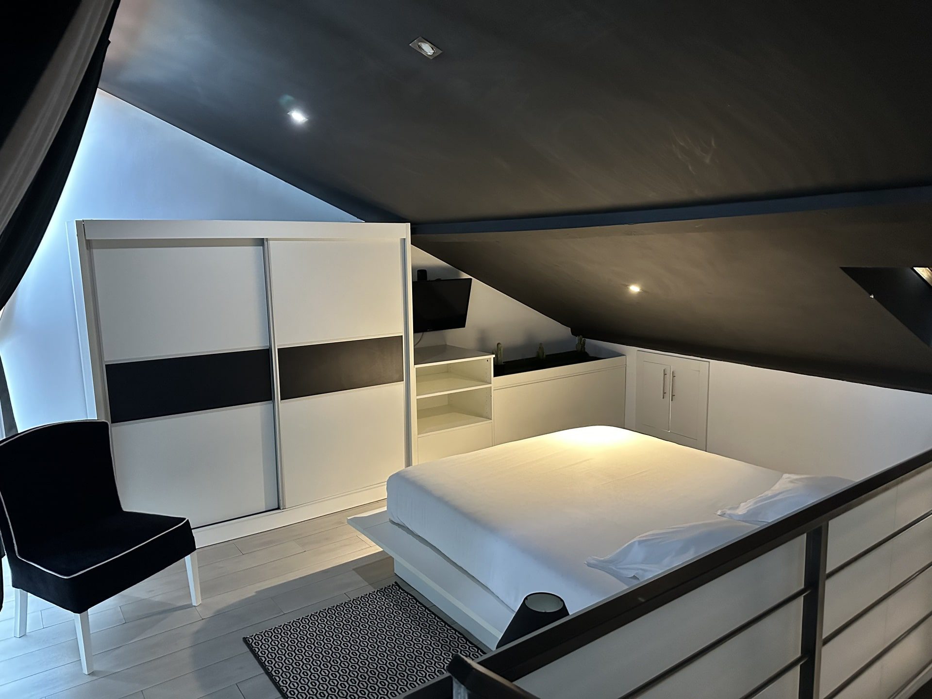 Le loft, une prouesse de design, vous accueille dans son espace ouvert où la cuisine entièrement équipée s’unit harmonieusement au séjour. Plongez-vous dans le confort de notre salon spacieux, équipé d’un coin TV parfait pour vos soirées détente. À l’étage, une chambre baignée de lumière avec son propre coin salon vous invite à des nuits paisibles. Profitez également d’une salle de bain équipée d’une baignoire balnéo double, et d’un sauna pour une relaxation ultime. Avec un garage privé intégré, accédez directement à votre havre de luxe, sans souci et en toute discrétion.